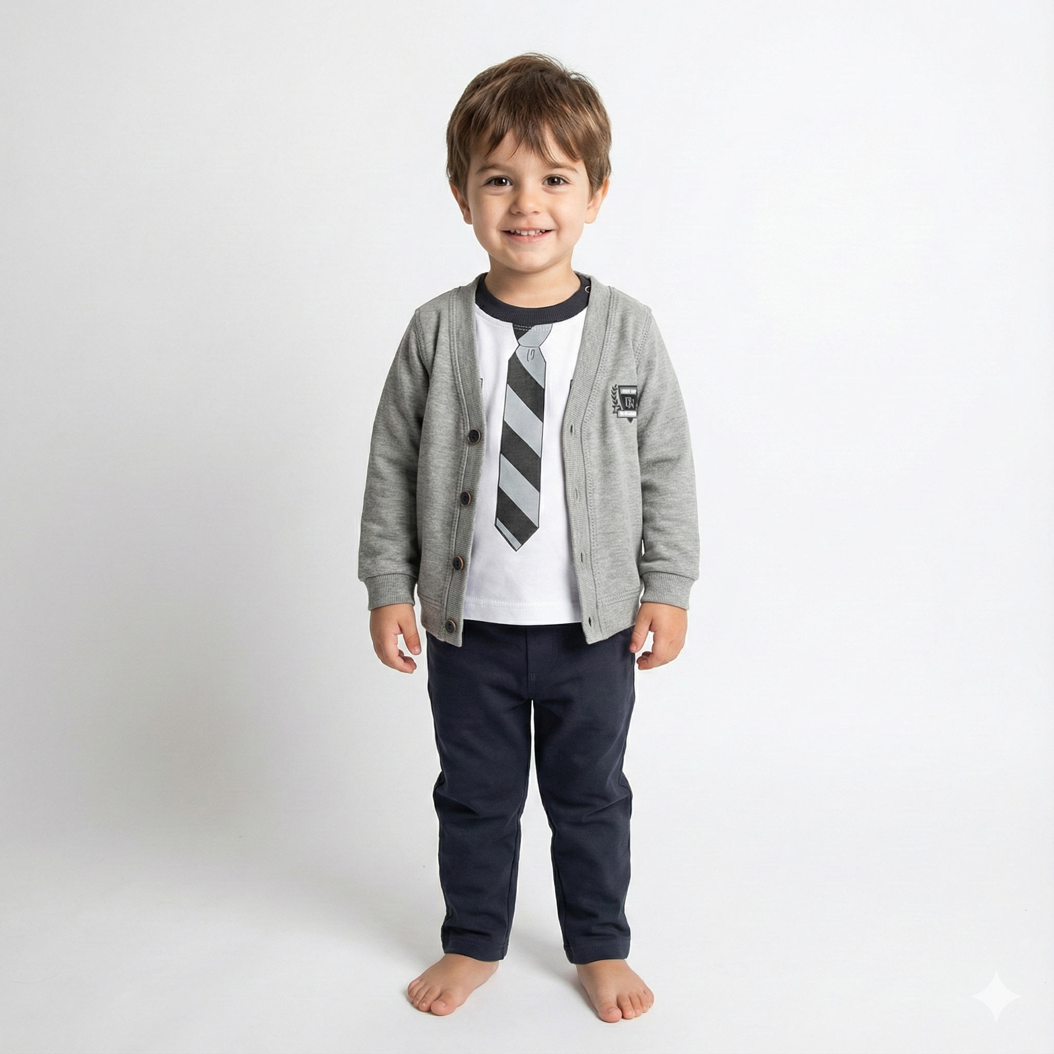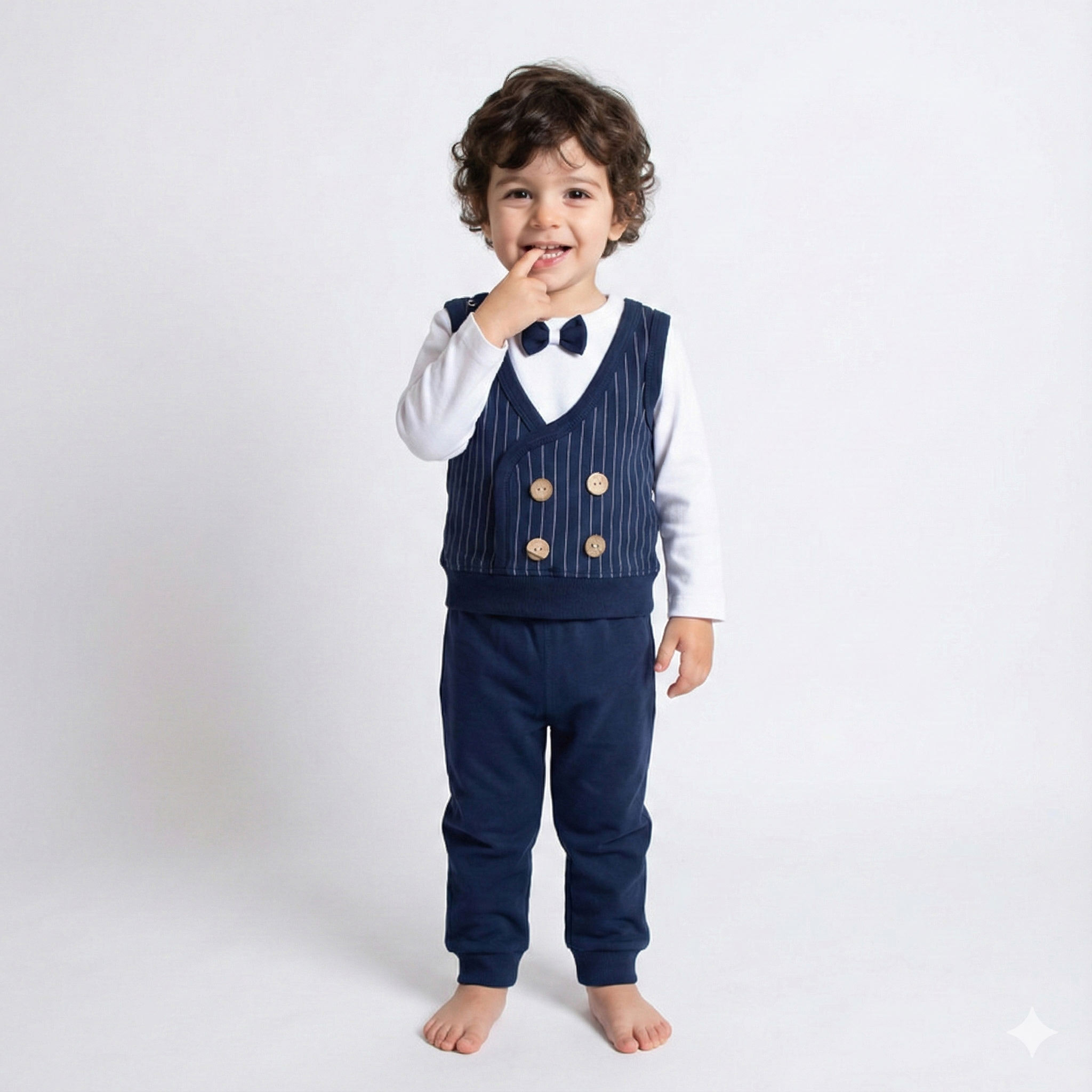 ست سه تکه ژاکت شلوار و بلوز کروات سرمه ای