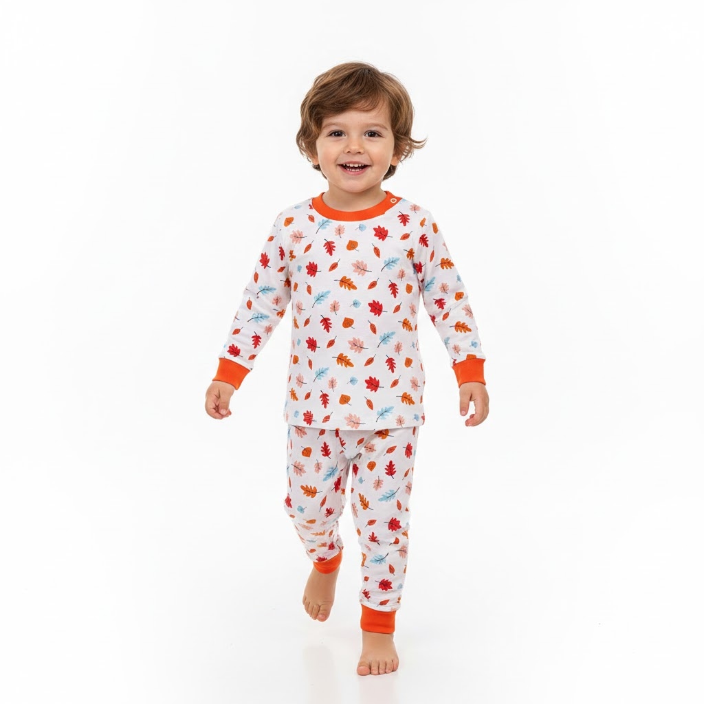 ست لباس راحتی  شامل بلوز آستین‌ بلند و شلوار، تولید شده از پارچه فانریپ ۱۰۰٪ پنبه طبیعی است که نرمی و لطافت فوق‌العاده‌ای دارد و برای پوست حساس کودکان کاملاً مناسب است.سرآستین‌ها، یقه و دم‌پای شلوار با پارچه کشباف رنگی طراحی شده‌اند تا علاوه بر زیبایی، فرم لباس به‌خوبی حفظ شود و تن‌خور مرتبی داشته باشد. این ست انتخابی ایده‌آل برای استفاده روزمره، منزل و لباس خواب کودک است.