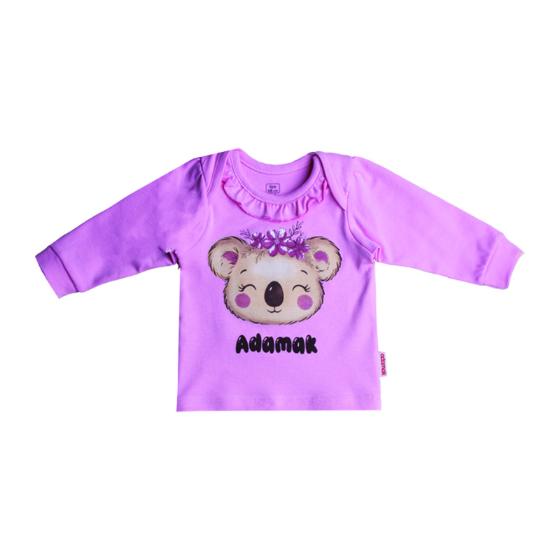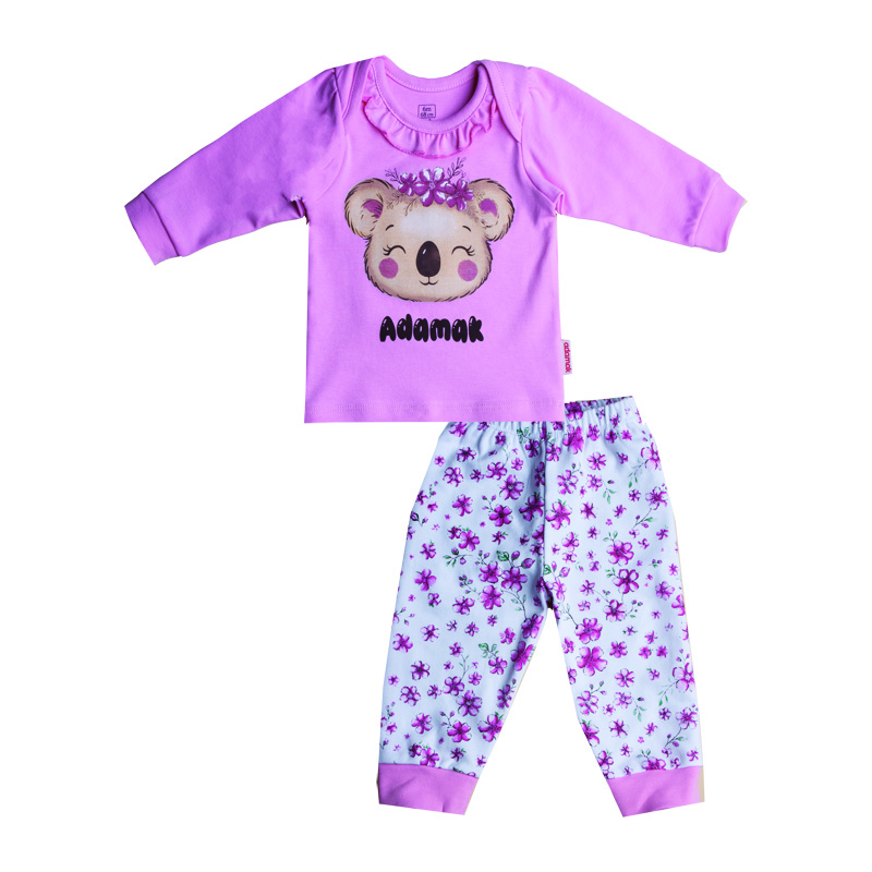 ست لباس راحتی نوزادی شامل بلوز آستین‌بلند و شلوار، تهیه‌شده از پارچه دورو ۱۰۰٪ پنبه با کیفیت بالا که نرمی، لطافت و تنفس‌پذیری فوق‌العاده‌ای دارد و برای پوست حساس نوزاد کاملاً مناسب است. بلوز با طرح فانتزی و دوست‌داشتنی کوآلا و یقه چین‌دار، ظاهری شاد و کودکانه ایجاد کرده و شلوار با طرح گل‌دار و کمر کشی، راحتی و آزادی حرکت نوزاد را فراهم می‌کند. این ست انتخابی ایده‌آل برای لباس راحتی، خواب و استفاده روزمره در منزل است.