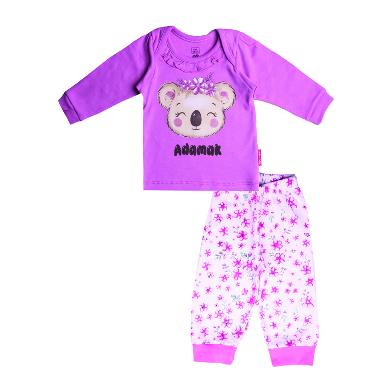 ست لباس راحتی نوزادی شامل بلوز آستین‌بلند و شلوار، تهیه‌شده از پارچه دورو ۱۰۰٪ پنبه با کیفیت بالا که نرمی، لطافت و تنفس‌پذیری فوق‌العاده‌ای دارد و برای پوست حساس نوزاد کاملاً مناسب است. بلوز با طرح فانتزی و دوست‌داشتنی کوآلا و یقه چین‌دار، ظاهری شاد و کودکانه ایجاد کرده و شلوار با طرح گل‌دار و کمر کشی، راحتی و آزادی حرکت نوزاد را فراهم می‌کند. این ست انتخابی ایده‌آل برای لباس راحتی، خواب و استفاده روزمره در منزل است.