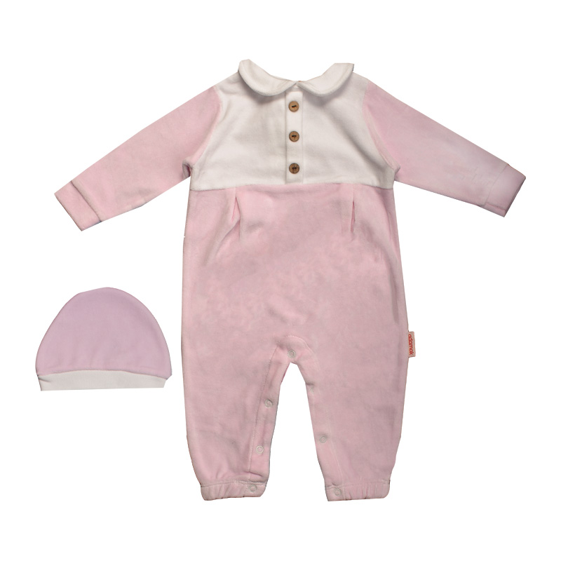 سرهمی مچدار یقه ب ب مخمل صورتی