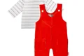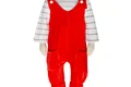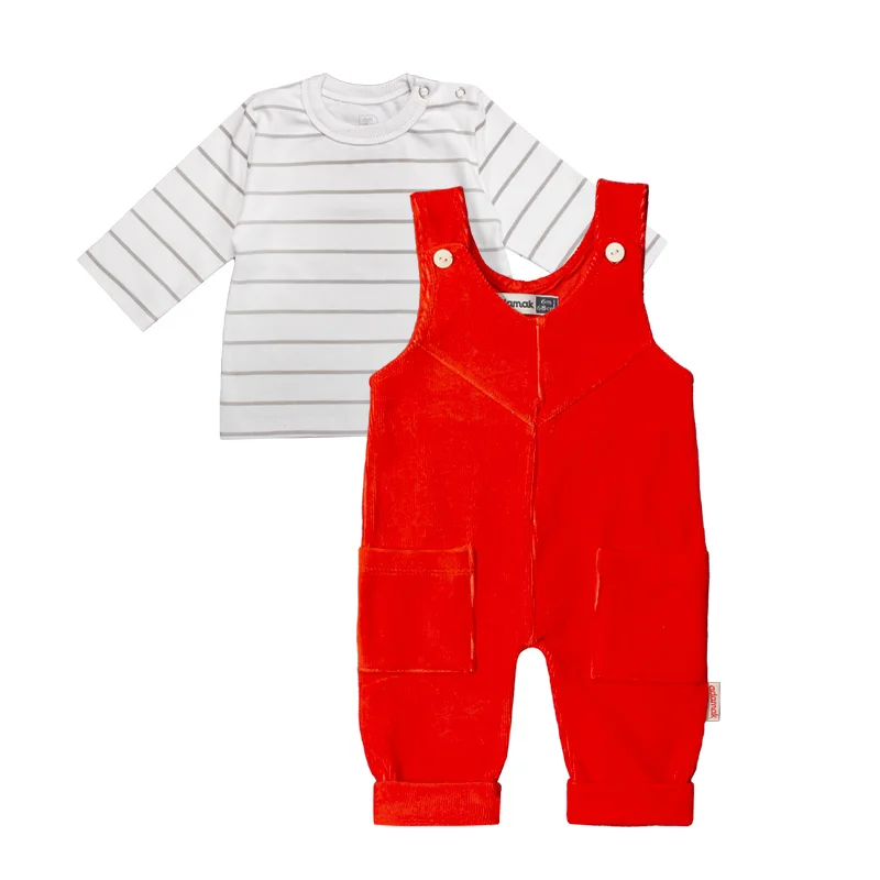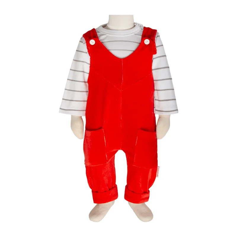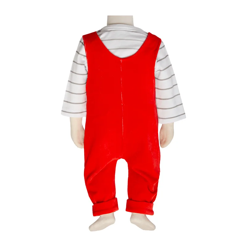 سرهمی پیشبندی مخمل با بلوز راه راه قرمز