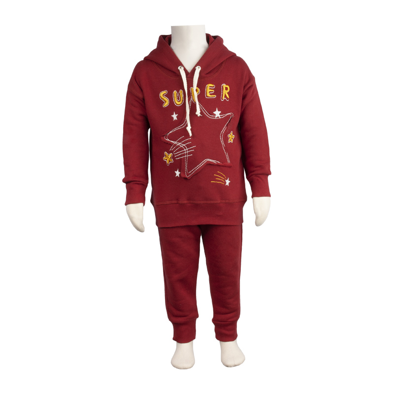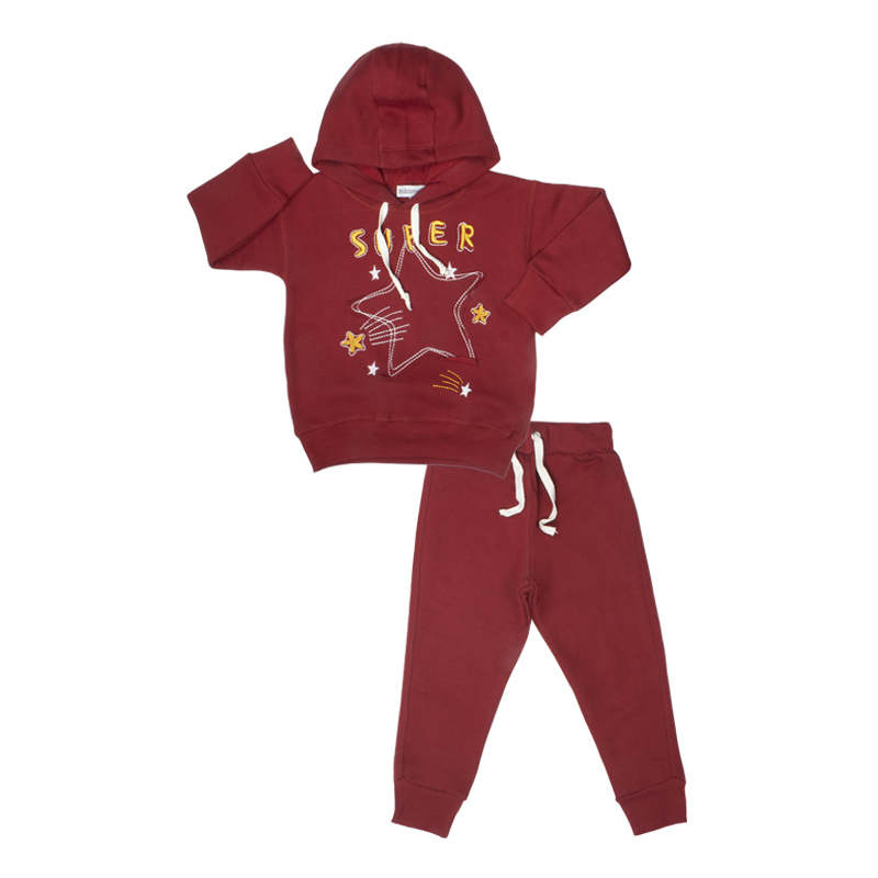 سوئيشرت و شلوار كلاهدار super star زرشکی